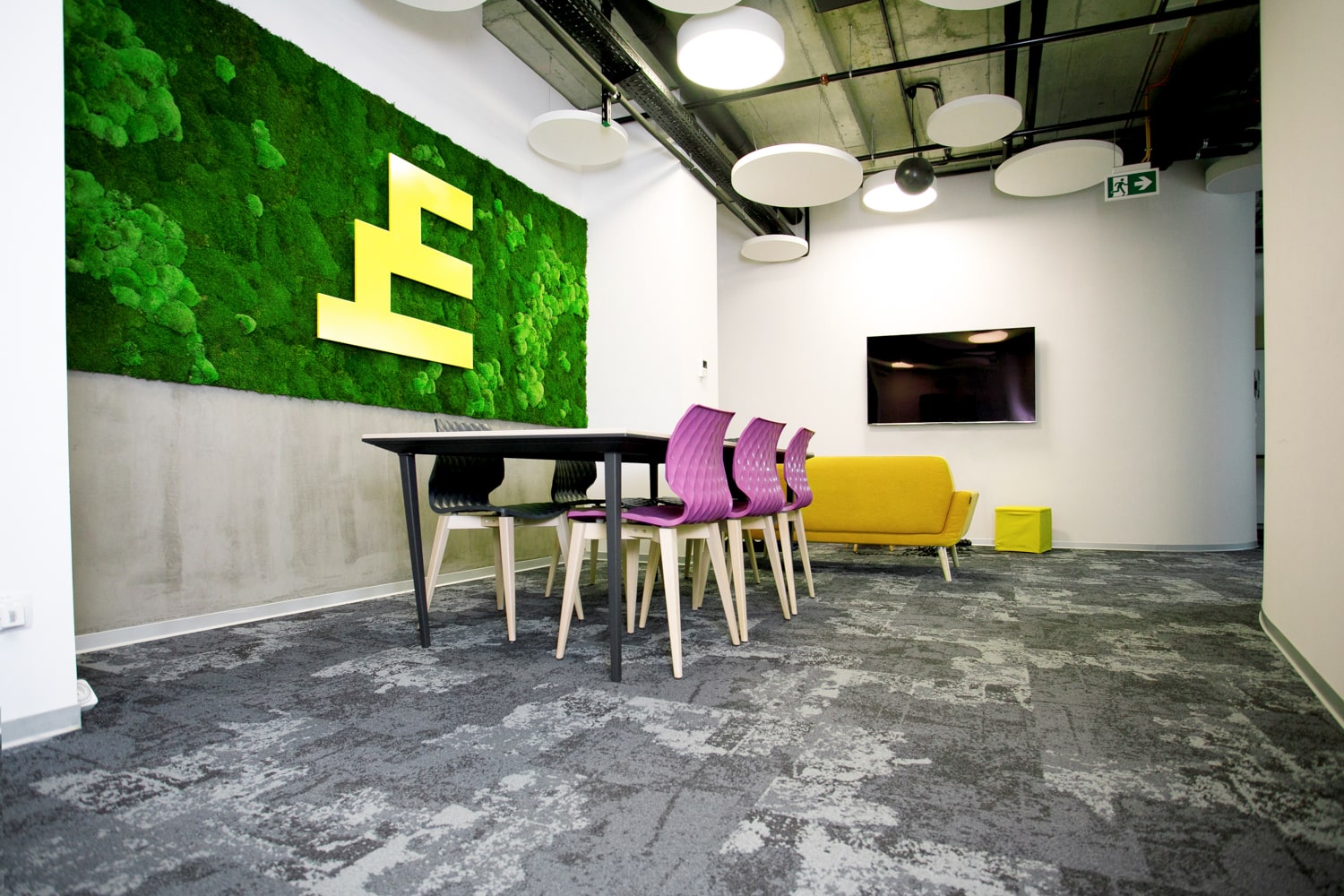 Für den IT-Start-Up Exponea (heute Teil von Bloomreach) entstand eine großformatige GREENIN Mooswand, die als markantes Branding- und Gestaltungselement im offenen Collaboration-Bereich eingesetzt wird. Das hinterleuchtete Firmenlogo wurde farblich exakt auf die Corporate Identity abgestimmt und tief in die Moosfläche integriert, sodass ein klarer, moderner Blickfang entsteht, der Besucher wie Mitarbeitende gleichermaßen anspricht.