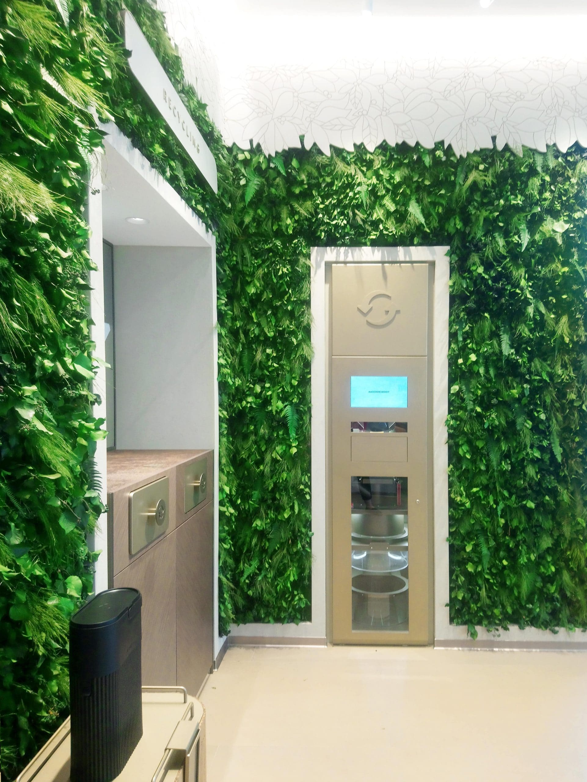Im Nespresso Atelier Wien, dem neuen Flagship Store der Marke an der Kärntner Straße, wurde eine großformatige GREENIN Pflanzenwand mit Moos als Bestandteil des aktuellen Store-Design-Konzepts umgesetzt. Die Installation besteht aus konserviertem Moos in Kombination mit stabilisierten Efeu- und Farnstrukturen und wurde so geplant, dass sie sich präzise in die räumliche Linienführung und die Lichtarchitektur des Flagship Stores einfügt.