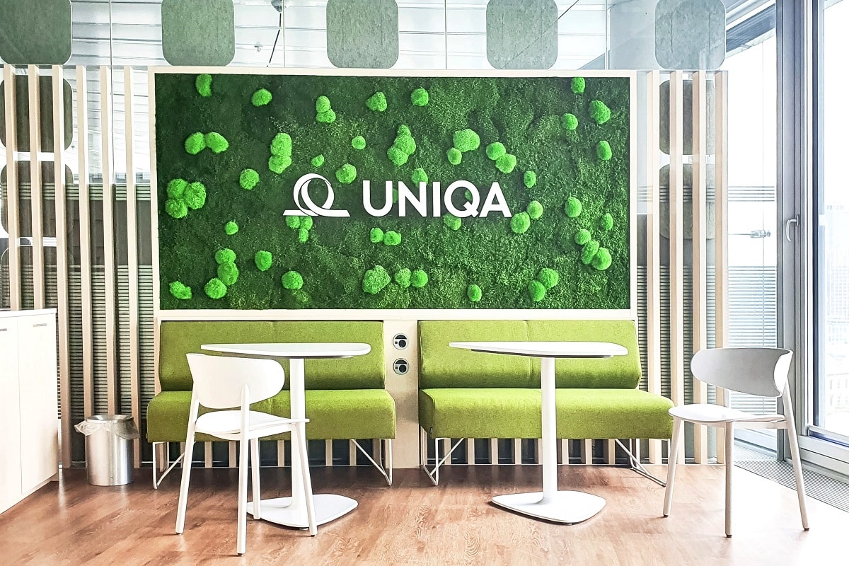 Die Zusammenarbeit mit GREENIN verlief von der Planung bis zur Umsetzung sehr angenehm und effizient. Für unseren Pausen- und Begegnungsbereich im UNIQA Tower wurden 16 individuelle Moosbilder – darunter auch das UNIQA-Logo – gefertigt. Das natürliche Grün schafft eine ruhige, freundliche Atmosphäre und unterstützt unser Konzept eines ansprechenden Arbeitsumfelds.